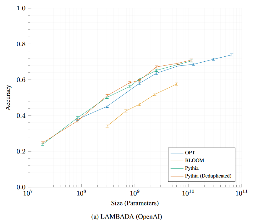 Pythia and Pythia-deduped models compared with OPT and BLOOM.